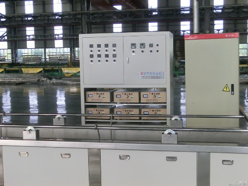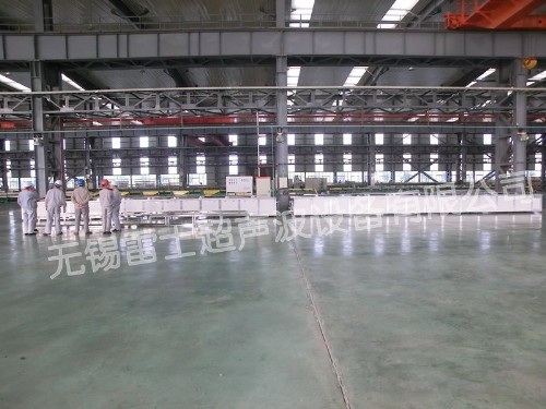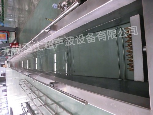 | 型号:LSA-E25/9/1200超声波清洗机 一、系统构成 组合电器控制柜 一只 超声波发生器 12台 超声波震板 12台 超声波清洗槽 一台 超声波漂洗槽 一台 过滤循环装置 二套 料框摆动装置 二套 二、技术参数 整机总重量: 2.5T 输入电压: AC380V/50HZ 超声波清洗槽参数 漂洗槽参数 外型尺寸: 11500*750*800mm 外型尺寸: 11500*750*800mm 内槽尺寸: 11000*550*670mm 内槽尺寸: 11000*550*670mm 超声波功率: 55KW 过滤器流量: 12T/H 超声振盒壁厚: 2mm 电泵扬程: 15m/H 转速2800r/min 超声波频率: 25KHZ 喷口数量: 50个 过滤器流量: 12T/H 喷口直径: 3mm 电泵扬程: 15m/H 转速2800r/min 调速电机: 0.75W 调速电机: 0.75W 摆动速率: 25~30转/min 摆动速率: 25~30转/min 加热功率: 55KW 加热功率: 55KW 时间控制: 0s~99H 时间控制: 0s~99H