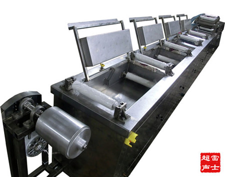 三、操作流程 1.首先向每槽内放水,水位线必须浸没上部超声波振盒3cm以上, 即保证超声波发射面浸没在水中,否则会引起烧坏超声波。 2.第一、二槽为超声波循环过滤槽,第三、四、五槽为超声波清水漂洗槽。 3.根据客户要求,自行设定加热温度。 4.将所需清洗的产品放入工夹具内,开启主机开关。 5.开启清洗机外侧的磁力张紧器开关,根据要求调整松紧度。 6.利用调速旋钮,调至合适的速度。 7.打开控制柜面板上的风刀开关。 8.打开控制面板上的烘干开关. 9.开启超声开关。 10.遇有情况,可按下控制柜的紧急停止按钮,在清洗槽上料区同样设有紧急停止按钮。 四、性能特点 1.主机输送平稳可靠,速度可调,方便控制清洗洁净度。 2. 超声波发生器具有电流显示,功率可调节功能,操作更人性化。 3.超声强度大,超声密度高,该超声驱动形式适于清洗油污、石蜡等难以清洗的产品,在多种行业得到广泛应用。 4.超声波控制器采用独特的扫频驱动电路,彻底消除清洗盲区,杜绝了输出信号互相干扰,频率不谐振现象。 5.设有风刀切水功能,工器件干燥速度提高。 6.设计了过压、过温、过流保护线路,安全可靠有保障。 7.控制面板设有急停按钮可便于控制。 ![]() |