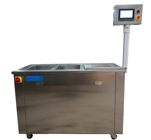 | 雷士超声工业以太网超声波清洗机 科技攻关的新成果,第一台真正意识上的工业以太网超声波清洗机,已经在无锡雷士超声波设备有限公司诞生,通过VNC软件,在局域网内的电脑操控屏进行实时监控和操作,实现工业控制网络与企业信息网络的无缝连接,适宜于智能化无人工厂。 工艺流程:超声清洗→鼓泡漂洗→热风烘干 该设备由PLC触摸屏集成控制,具有清洗、加热、过滤、漂洗、烘干功能,定时,液位保护,自动开关盖、自动进排水、工业以太网等功能。 操作指南 1.将水源和气源连接在设备上,连接好三相五线电源。 2.打开设备总电源,在机器左侧。 3.打开触摸屏右侧的电源开关,(确保紧急停止按钮在弹起状态) 4. 触摸屏亮起后等待10秒左右,进入欢迎界面。 5.在触摸屏任意位置点击,进入工作界面 6.点击清洗槽进水,漂洗槽进水,按动以后相应的按钮及指示灯变为绿色。此时超声清洗槽和鼓泡漂洗槽会进行注水作业。槽内安装有液位探头,水位到达后,自动停止注水,触摸屏上的指示灯变为红色。 7.点击触摸屏上的参数设置,可进行调整,画面为出厂默认值。 8.点击远程控制按钮,按钮及指示灯变为绿色,此时可用远程控制软件VNC进行以太网控制。 9.点击工作画面按钮,返回工作界面。 性能特点 1. 操作面板PLC触摸屏显示操作,功能全面,操作简便。 2.自动控制操作过程,整套系统实现具有清洗、加热、过滤、漂洗、烘干功能,定时,液位保护,自动开关盖、自动进排水、工业以太网等功能。 3.整体设备充分考虑人体工程学,保证操作者安全、舒适。 4.超声波强度大,超声波密度高,该超声驱动形式适于清洗油污、石蜡等难以清洗的产品,在机械行业得到广泛应用。 5.超声波控制器采用独特的扫频驱动电路,彻底消除清洗盲区,不会出现信号干扰,以及频率不谐振现象。 6.具有软启动及停机功能,延长电器使用寿命。 7.设计了过压、过温、过流保护线路,安全可靠有保障。 8.清洗时液体内产生的气泡非常均匀,工件的清洗效果也将非常均匀一致。 10. 设备安装了液位报警探测器,在无水或水位低于加热管时自动报警。