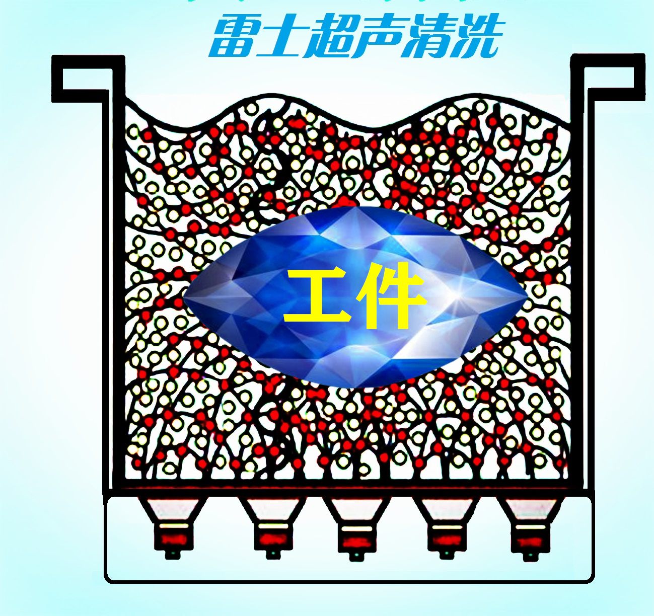 | 浸泡清洗法 在槽中加入酸性或碱性清洗液,将被需要清洗的物件放入进行浸泡,使表面和内腔的附着物通过浸泡方式变软或自然脱落的方式。这种方式物理浸湿,纯粹是靠清洗液的化学反应作用来达到清洗目的,需要很长时间,并且清洗能力弱。 喷气清洗法 在清洗槽内安装多路喷气口喷嘴,喷气口方向对准清洗物件,打开气泵将物体表面的灰尘或脏物吹走,有的工厂大部分是采用工业用气枪,工人手握对着吹的方式,该方式主要去除的是灰尘等没有粘附性的脏污,对油脂、蜡质、胶性污垢没有作用。 喷水清洗法 同喷气法一样,安装多路喷嘴,使清洗液在喷射在清洗物表面,依靠水流的冲击力,将水或混合性的清洗液对物体进行清洗,特别是在高压状态下,洗涤能力显著加强。 机械刷洗法 在清洗槽内用工装夹具安装毛刷,滚辊,拉丝布等,将需要清洗的物体放在槽中,利用机械的运动,工具毛刷、布等与工件磨擦实现清洗,这个在浸泡的同时辅助机械力,是一种比较初级原始的清洗方式,有直接效果,但不适合比较精密型或清洗品质较高的工件,特别是对精密件有损伤。 超声清洗法 在清洗槽内安装超声波换能器,超声波换能器发出震动波,在液体中传播,将液体分子拉裂成空化泡,由于周围压力的增大,空化泡迅速破碎,破碎的瞬间产生巨大的能量,从而把物体上的粘附物,碎屑,油脂等剥离下来,达到清洗的目的,该方法是一种高效无损的清洗方式。 真空清洗法 利用真空泵产生真空,将水中游离气体和溶解气体释放出来,通过排气阀排出,脱气后的是不饱和水,具有一定的吸收性,来进行清洗,当然该方法与超声结合效果更好。 干冰清洗法 干冰具有独特的热力学性能,温度极低(-78℃),当干冰颗粒被压缩空气冲击到被清洗物表面时,会迅速升华,在千分之几秒内体积膨胀近800倍,同时与待洗零件表面产生热交换,达到清洗零件表面的目的,因其设备造价和使用成本等因素,目前采用的相对较少。 滚筒清洗法 在槽内安装滚筒或波轮装置,旋转时产生高速离心力,使柔软物体甩向筒壁,上升后又回流下降,形成中心涡流,一方面带动水流运动,一方面类似拍打搅拌,再加上洗涤剂的作用,达到清洁的效果。