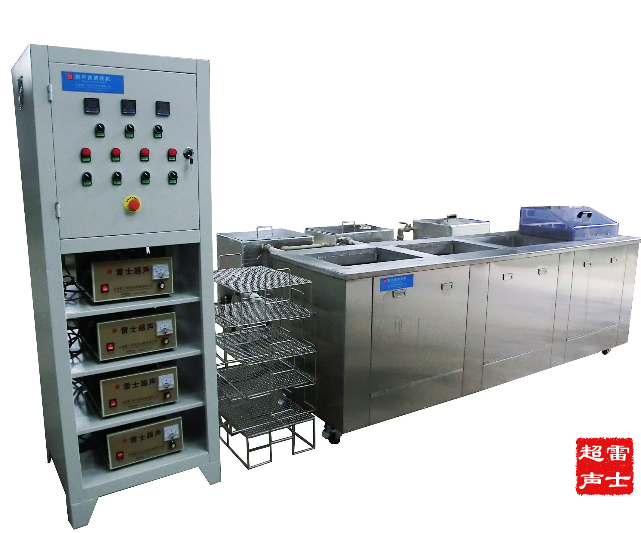 四槽式雷士清洗喷淋多用途超声波清洗机,该设备设超声清洗槽、超声漂洗槽、鼓泡漂洗槽及喷淋槽, 1槽及2槽均设有独立循环过滤系统,可以将清洗下来的杂物过滤干净。